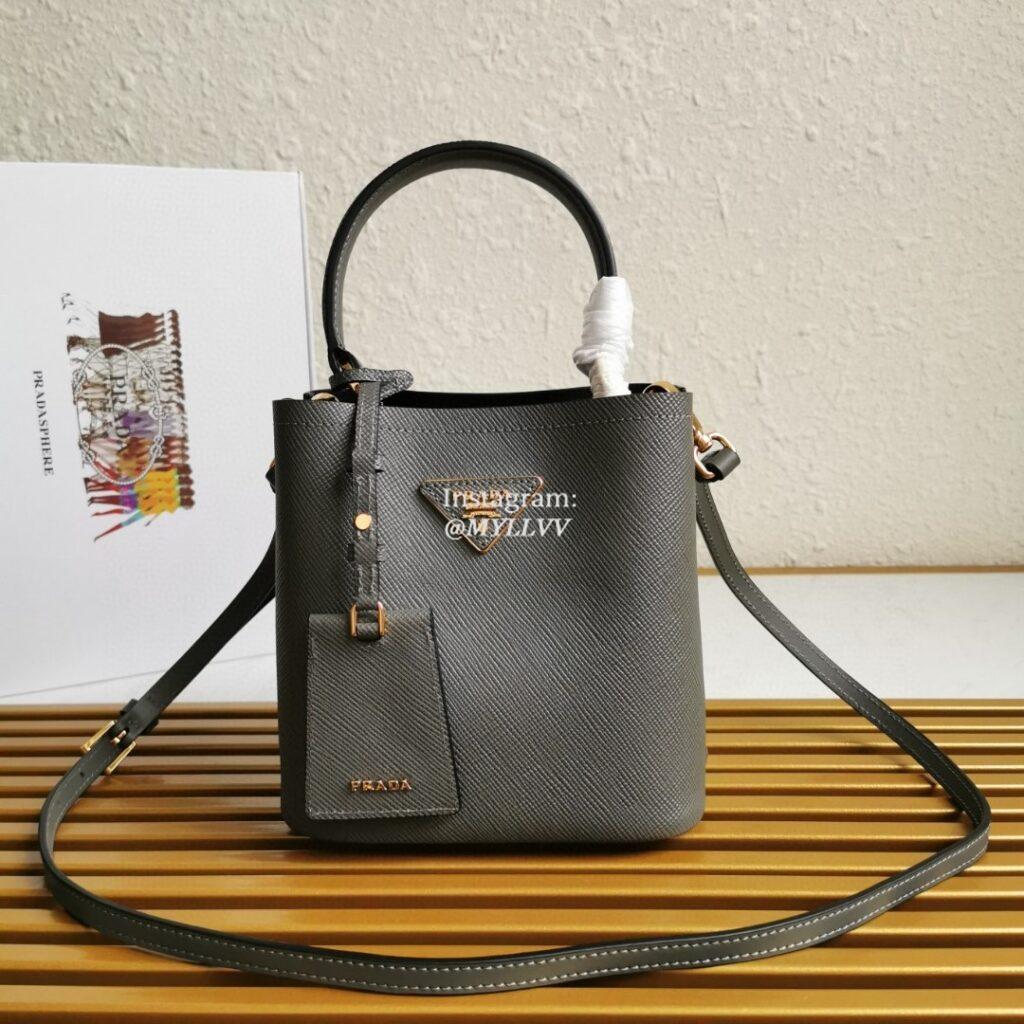 Top Quality Version:MYLLVV » Prada Grey Small Saffiano Leather Prada Panier Bag 1BA217