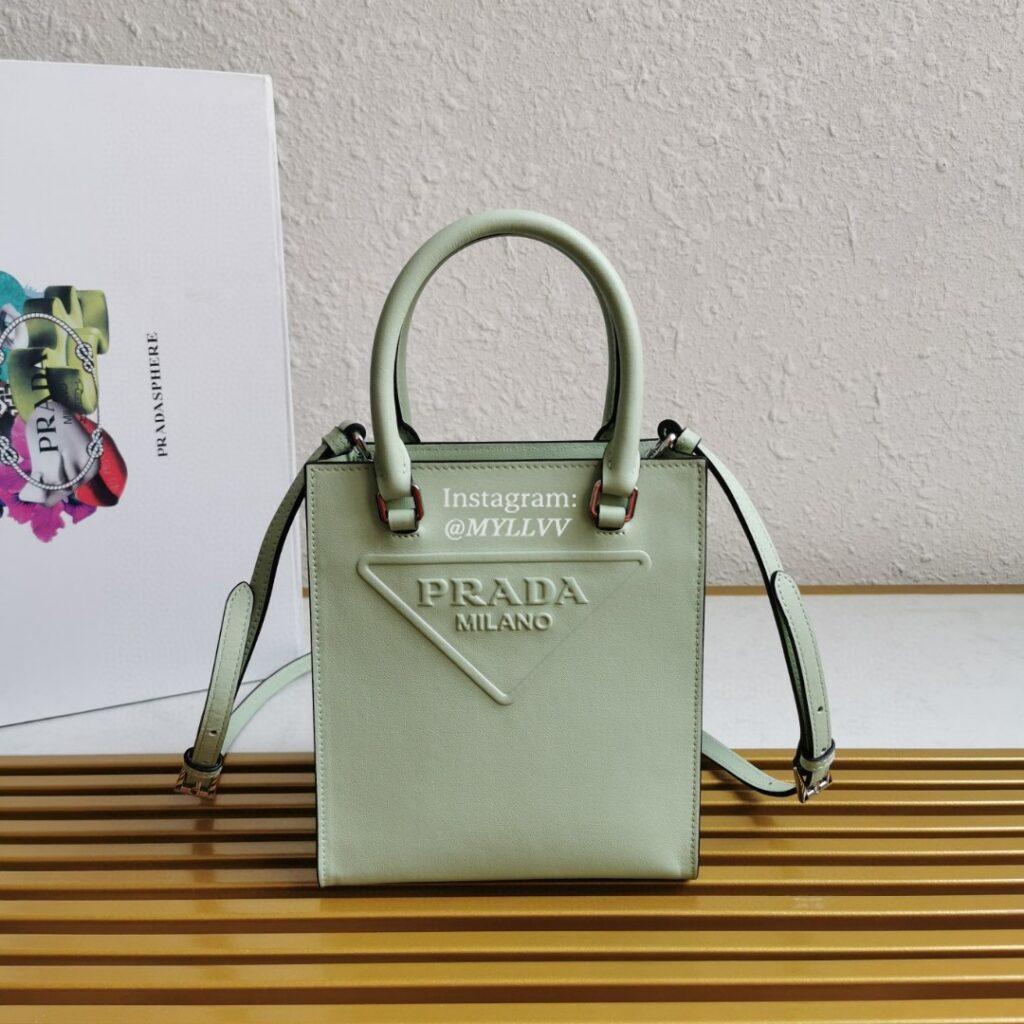 Top Quality Version:MYLLVV » Prada Light Green Leather Handbag 1BA333