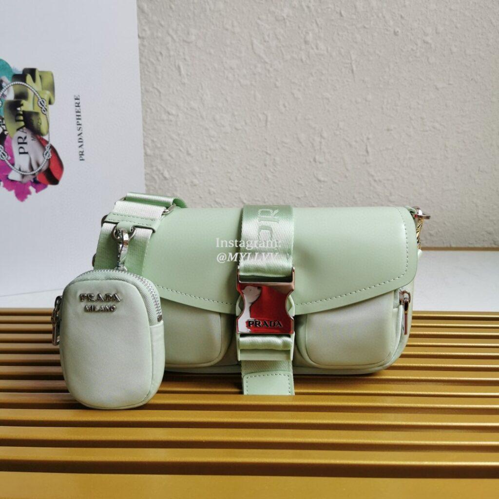 Top Quality Version:MYLLVV » Prada Light Green Pocket Nylon And Brushed Leather Bag 1BD295