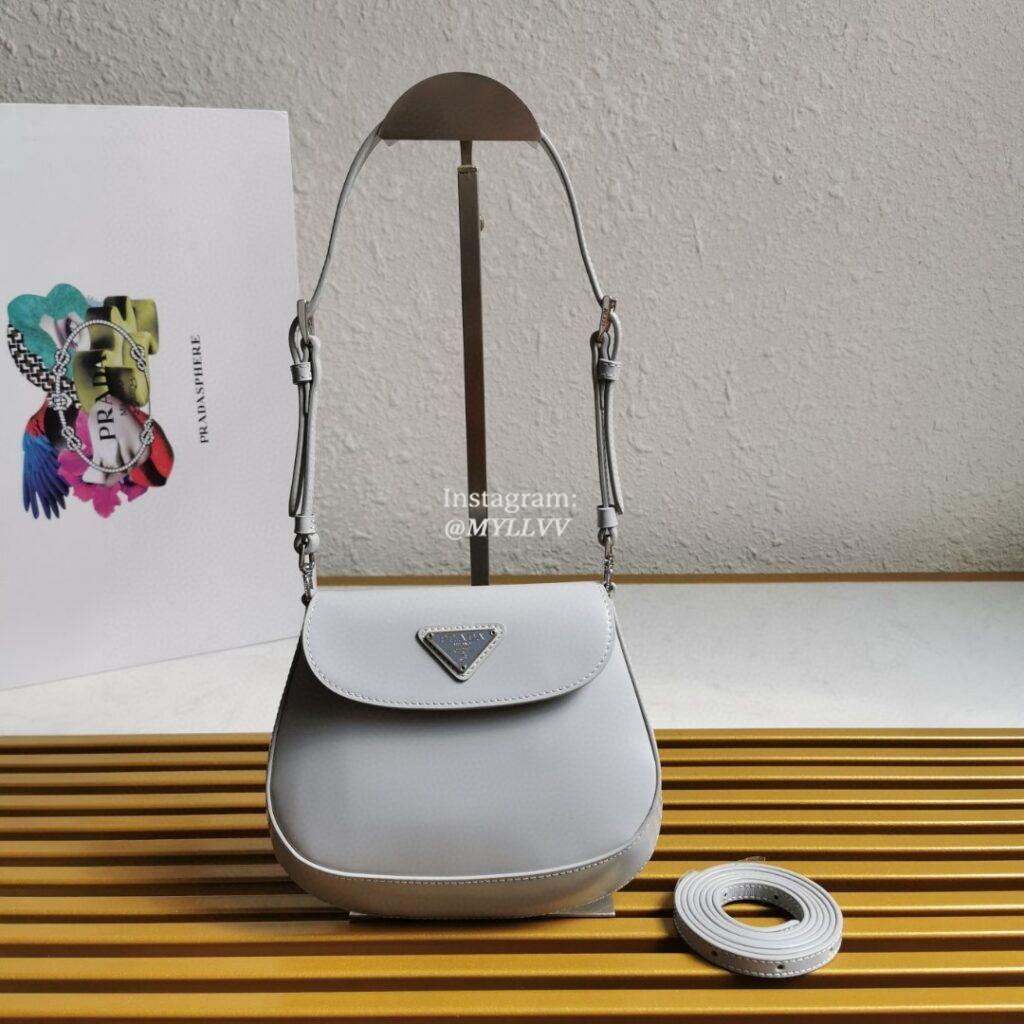 Top Quality Version:MYLLVV » Prada Light Grey Cleo Brushed Leather Mini Bag 1BH188