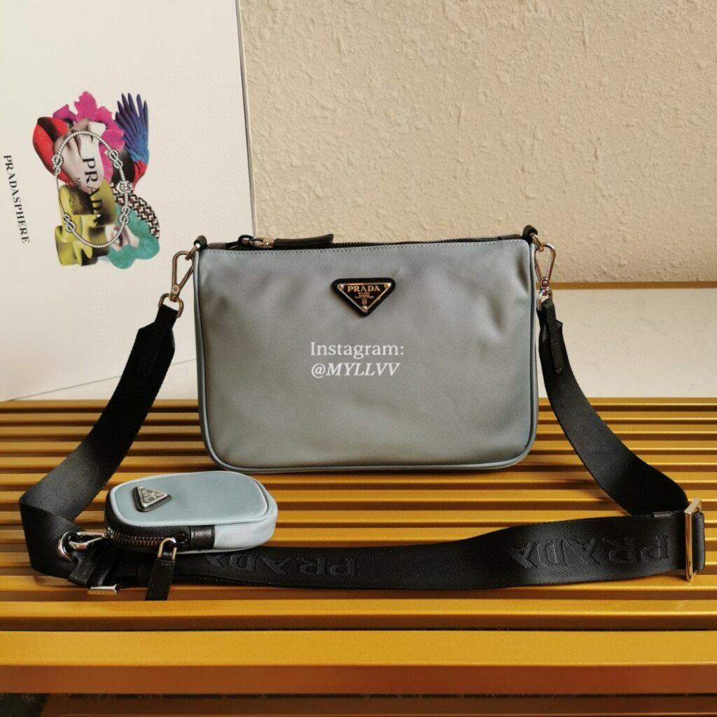 Top Quality Version:MYLLVV » Prada Light Grey Re-Nylon And Saffiano Leather Shoulder Bag 2VH113