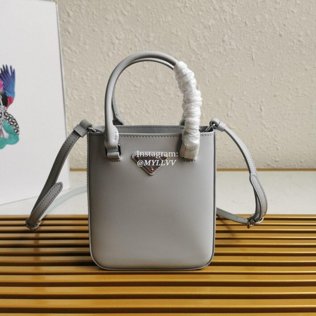 Top Quality Version:MYLLVV » Prada Light Grey Small Brushed Leather Tote Bag 1BA331