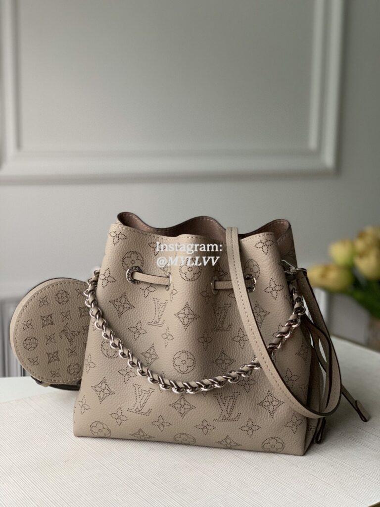 Louis Vuitton unveils the Bella bucket bag in Mahina calf leather with its perforated Monogram pattern. The bag’s small size and the attached round coin purse, featuring a miniature version of the perforated Monogram motif on one side, make it modern, desirable and trendy. The sophisticated leather and metal mixed handle associated with a removable leather strap bring versatility.