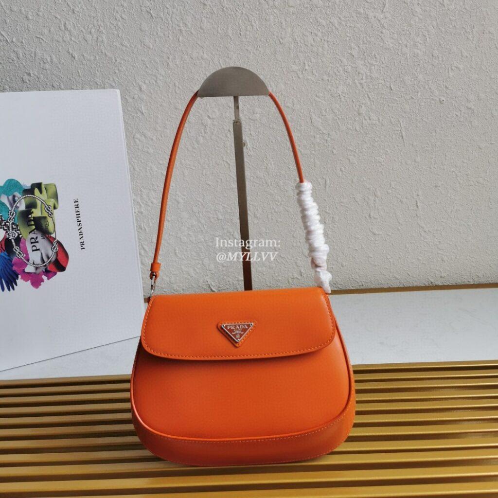 Top Quality Version:MYLLVV » Prada Orange Cleo Brushed Leather Shoulder Bag With Flap 1BD311