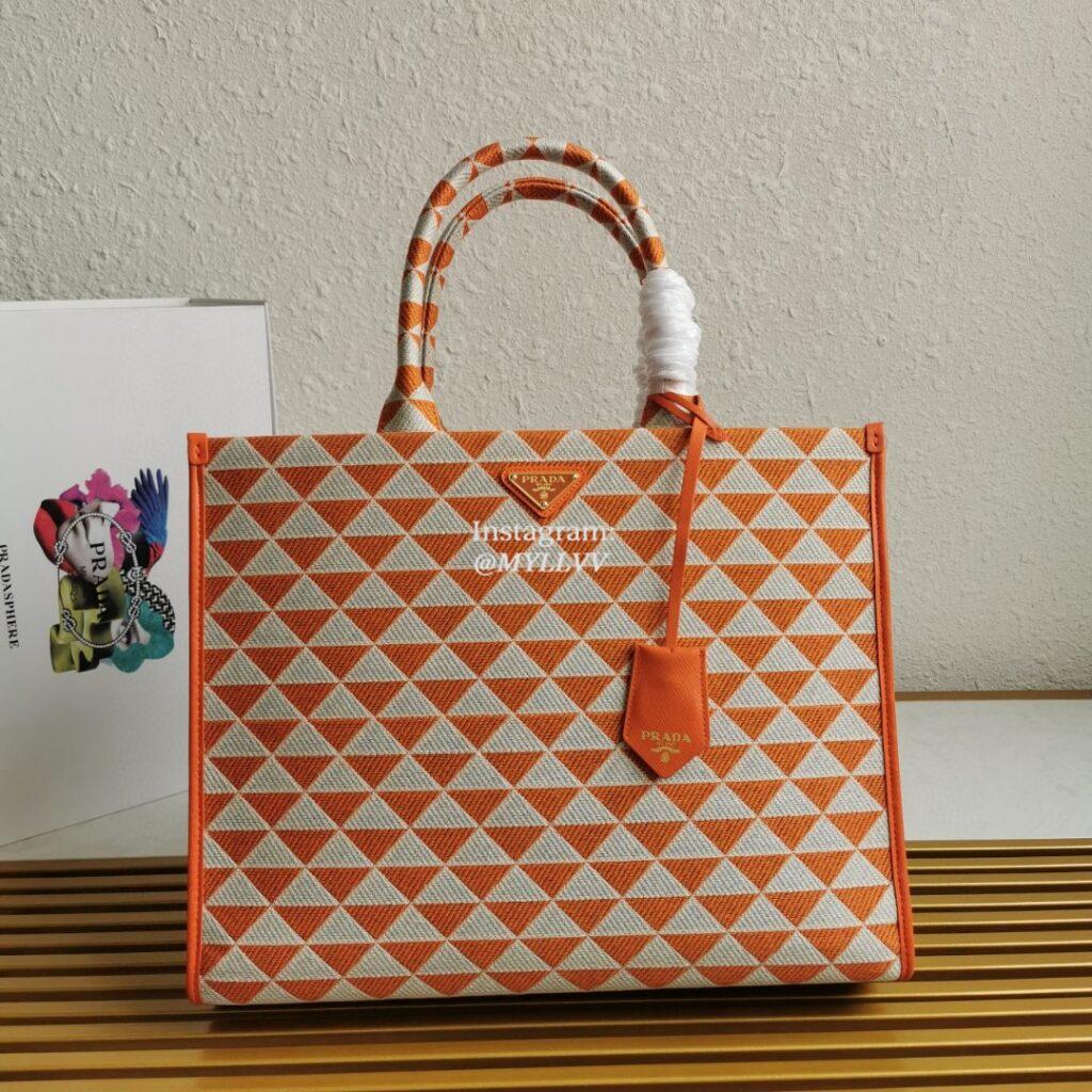Top Quality Version:MYLLVV » Prada Orange Large Prada Symbole Embroidered Fabric Handbag 1BA356