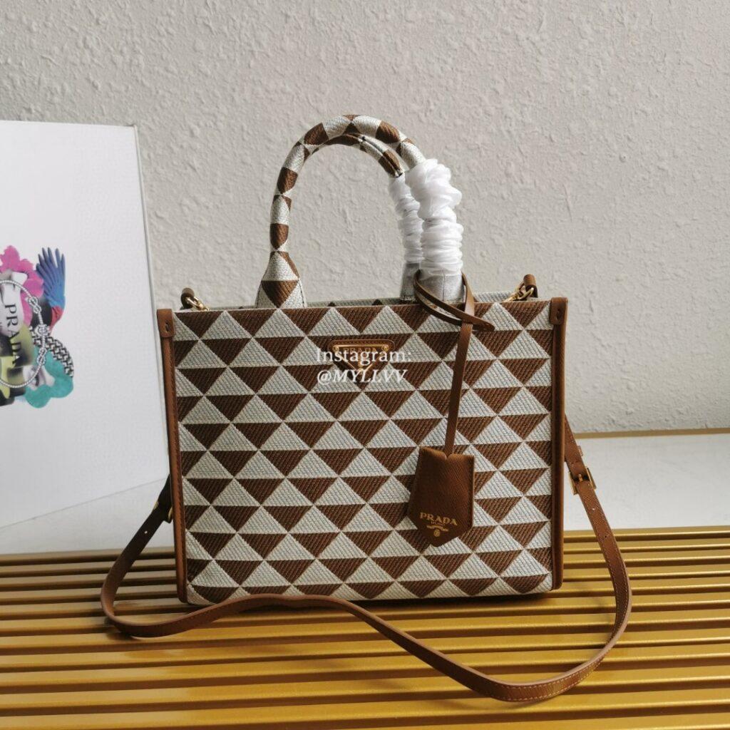 Top Quality Version:MYLLVV » Prada Brown Small Prada Symbole Embroidered Fabric Handbag 1BA354
