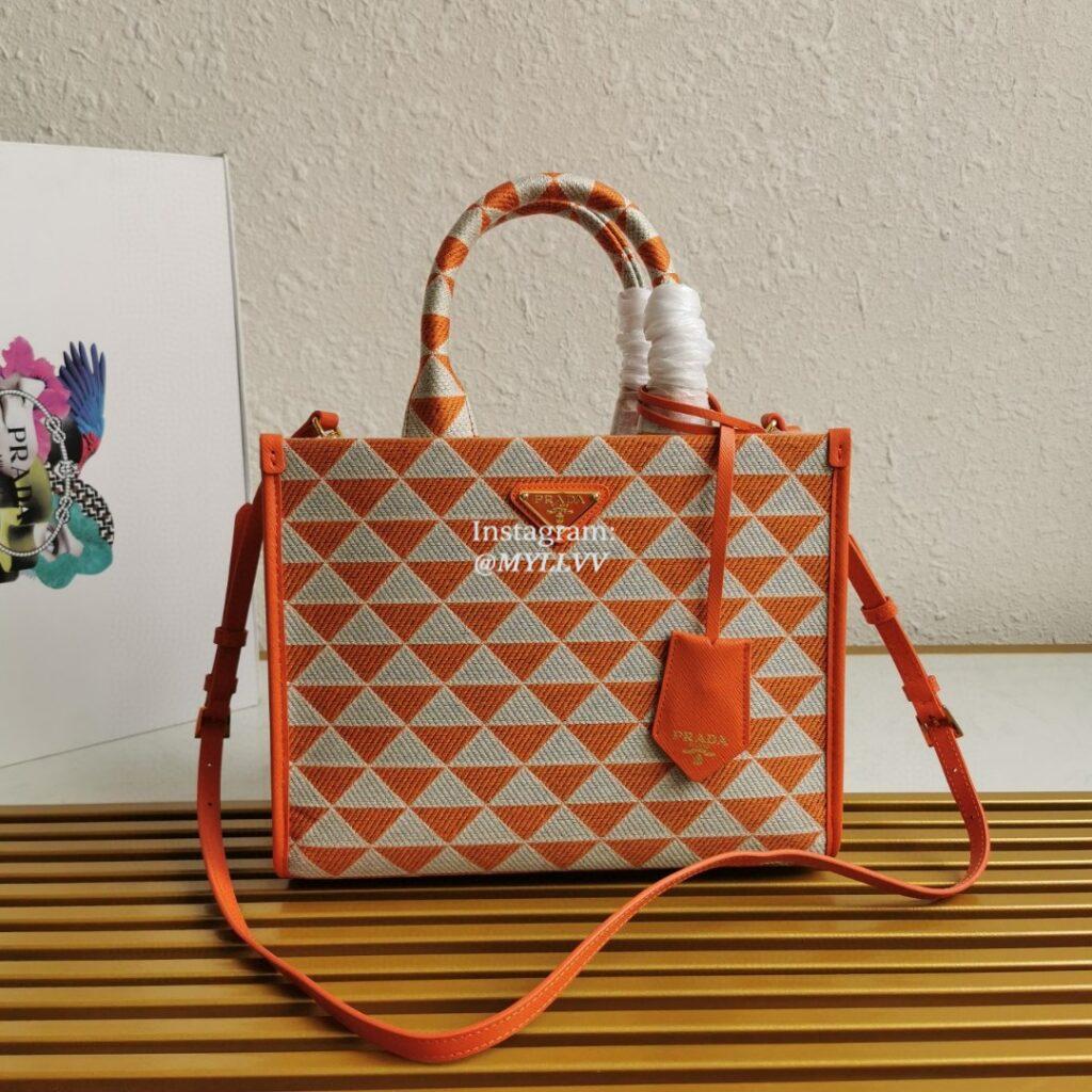 Top Quality Version:MYLLVV » Prada Orange Small Prada Symbole Embroidered Fabric Handbag 1BA354