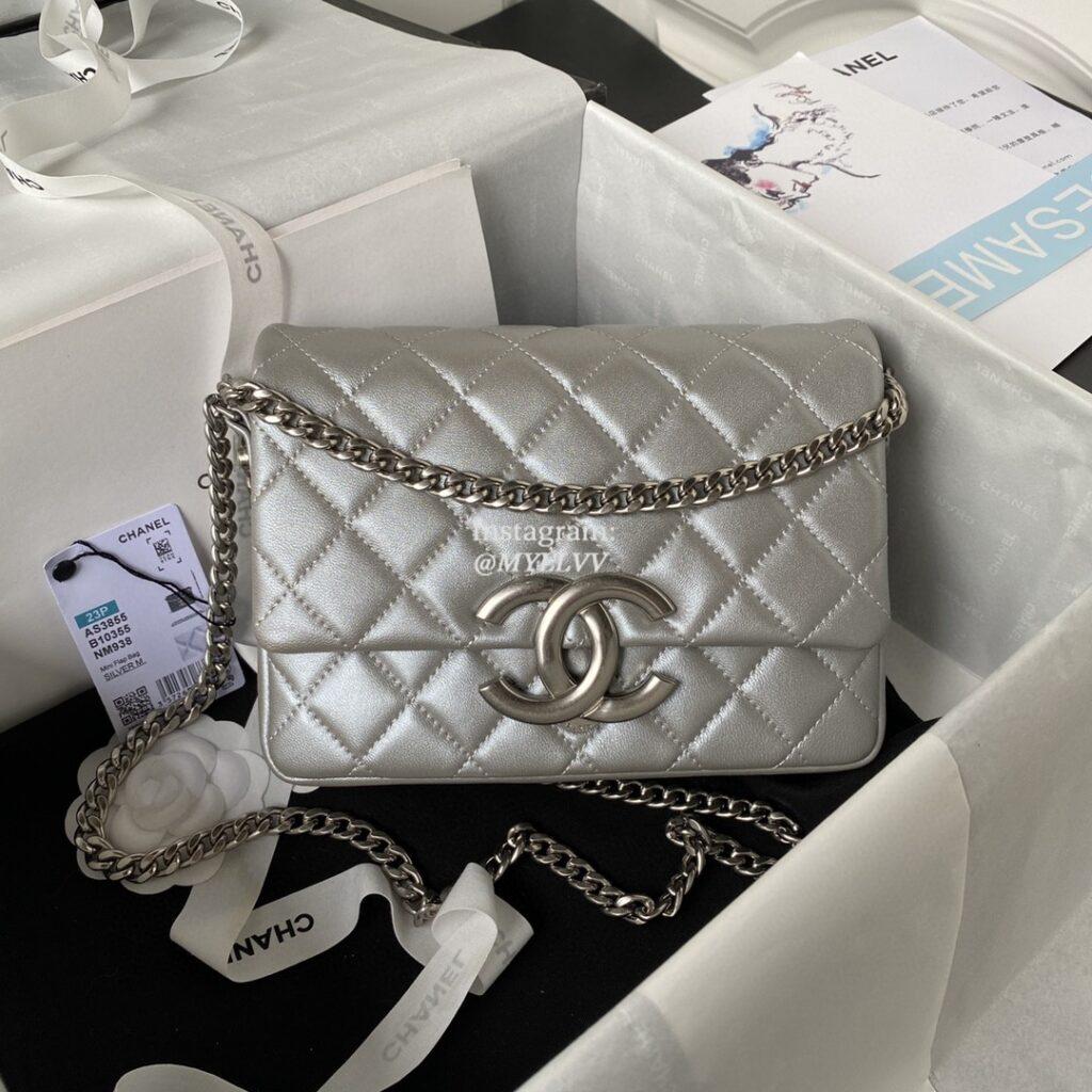 This small leather bag with soft pleated sides and a modern silhouette is decorated with the gold lettering logo on the flap. The adjustable woven tape shoulder strap decorated with the embroidered logo in a contrasting color makes the bag versatile and wearable as a crossbody or shoulder bag.