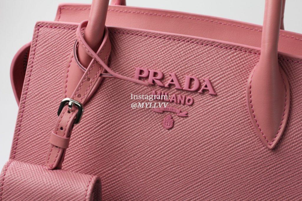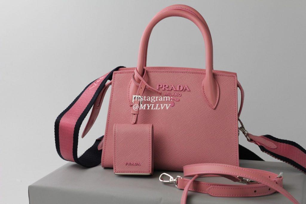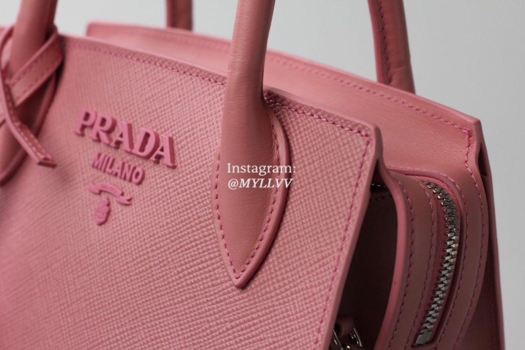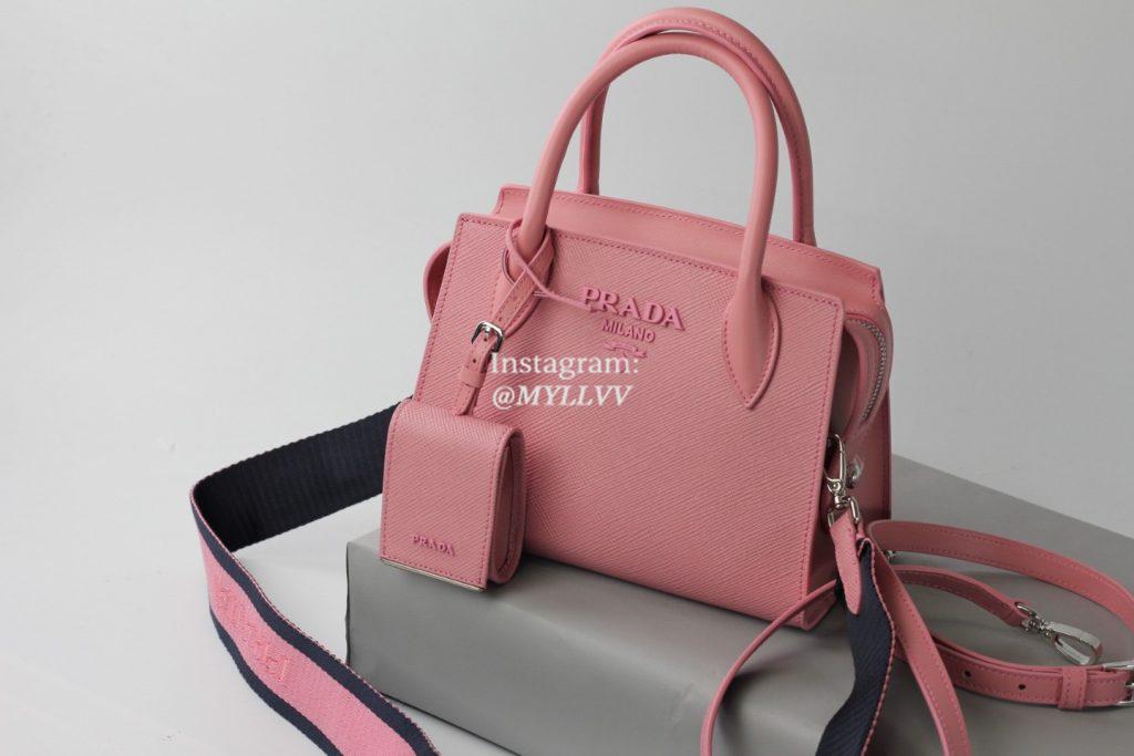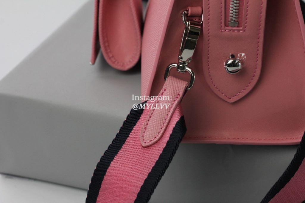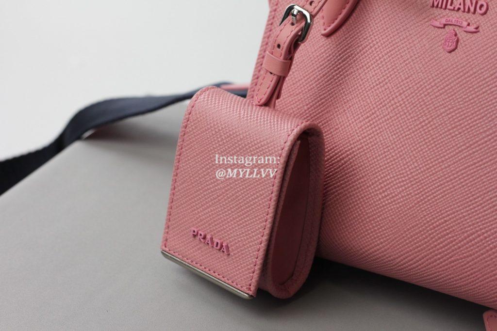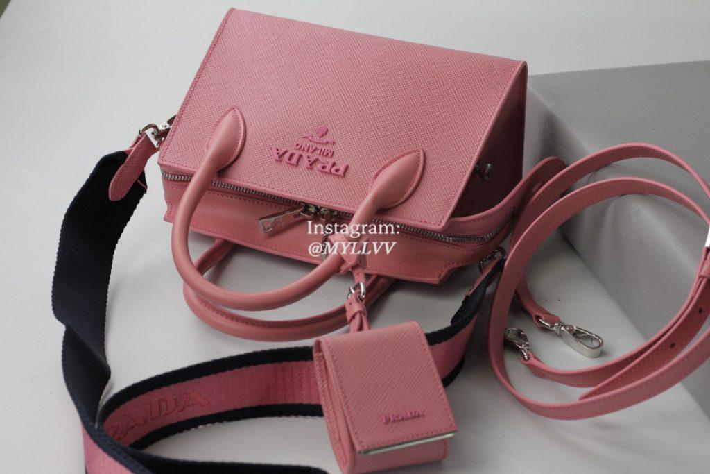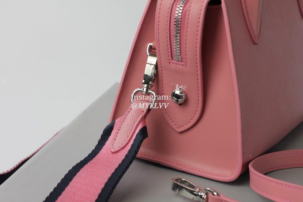 Top Quality Version:MYLLVV » Prada Pink Saffiano Leather Double Handle Handbag With A Adjustable Strap For Women 1BA269