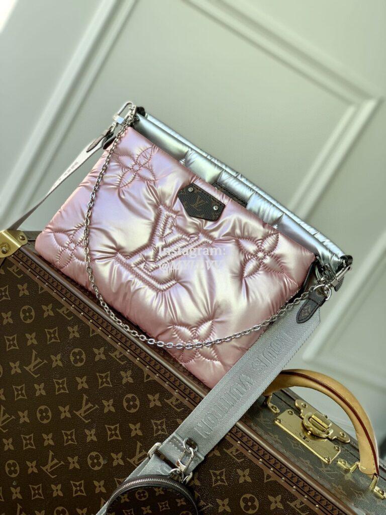 Crafted from recycled nylon in pale pink and silver, the Maxi Multi-Pochette Accessoires belongs to the season’s LV Pillow capsule. This playful piece provides so many styling opportunities: it can be worn cross-body on the long removable strap, carried as a clutch or by hand on its removable chain, with or without the cute detachable coin purse.