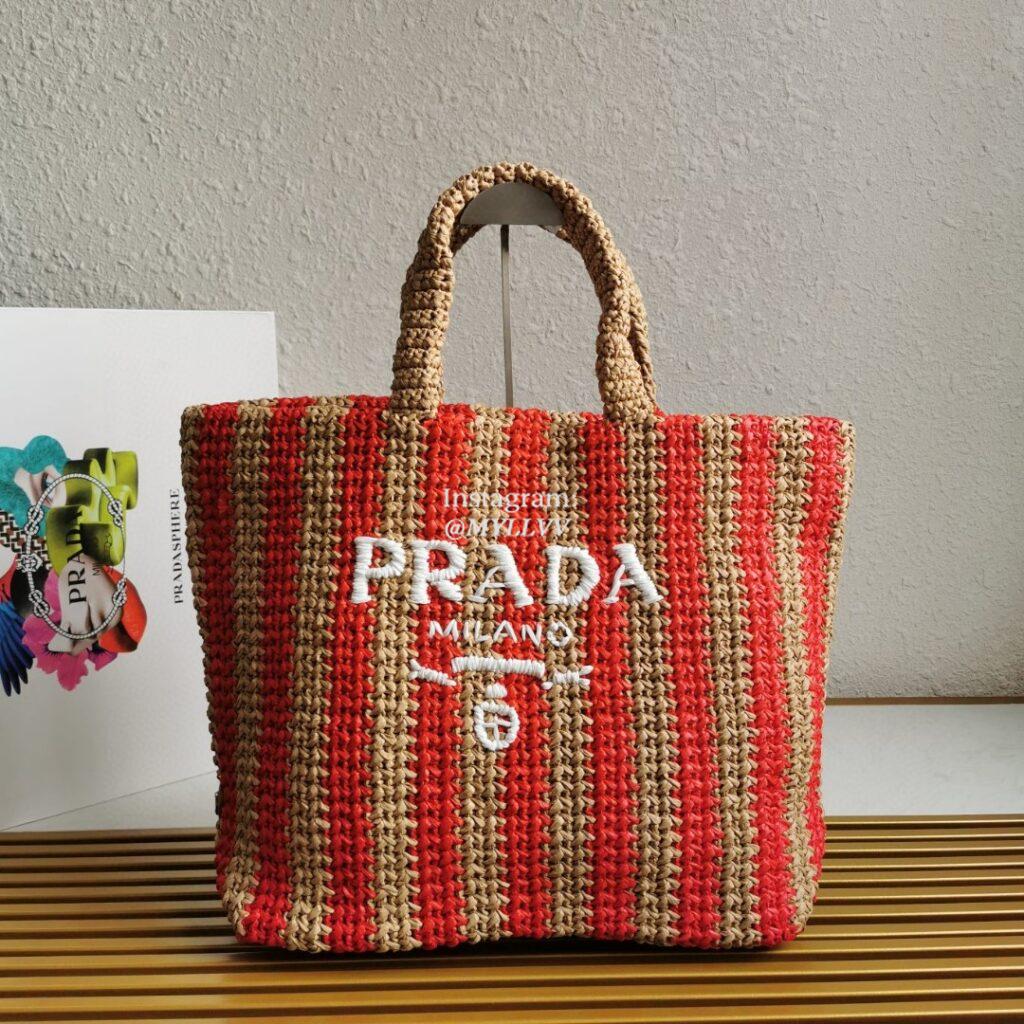 Top Quality Version:MYLLVV » Prada Red Brown Large Raffia Tote Bag 1BG392