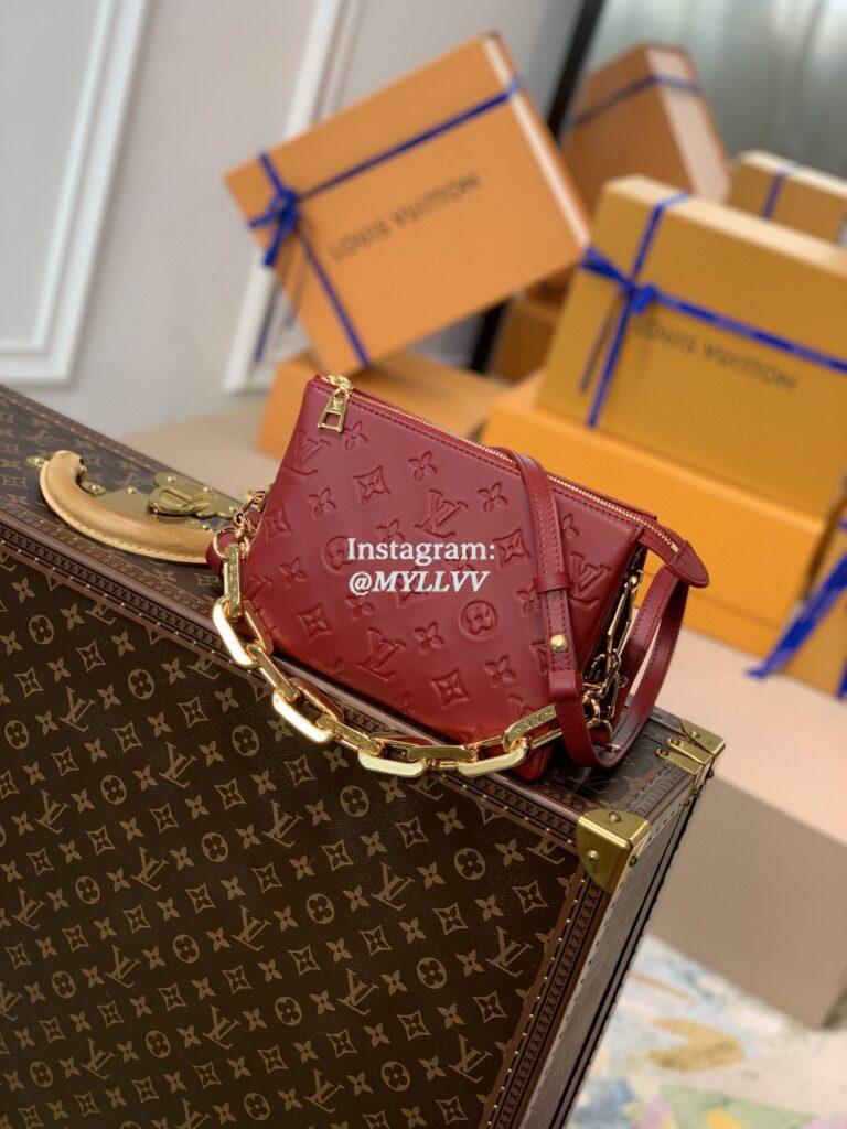 Top Quality Version:MYLLVV » Louis Vuitton Red Monogram Embossed Puffy Lambskin Coussin BB Handbag M57796