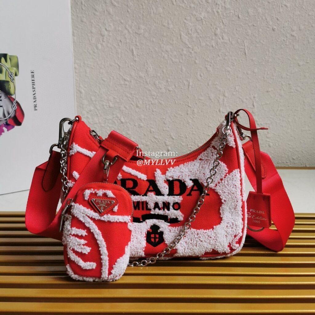 Top Quality Version:MYLLVV » Prada Red Re-Edition 2006 Embroidered Drill Shoulder Bag 1BH204