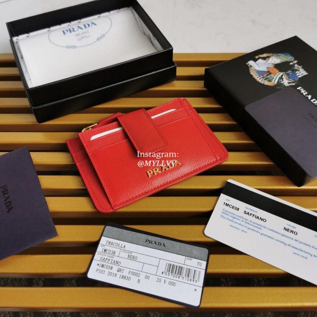 Top Quality Version:MYLLVV » Prada Red Saffiano And Leather Card Holder 1MC038