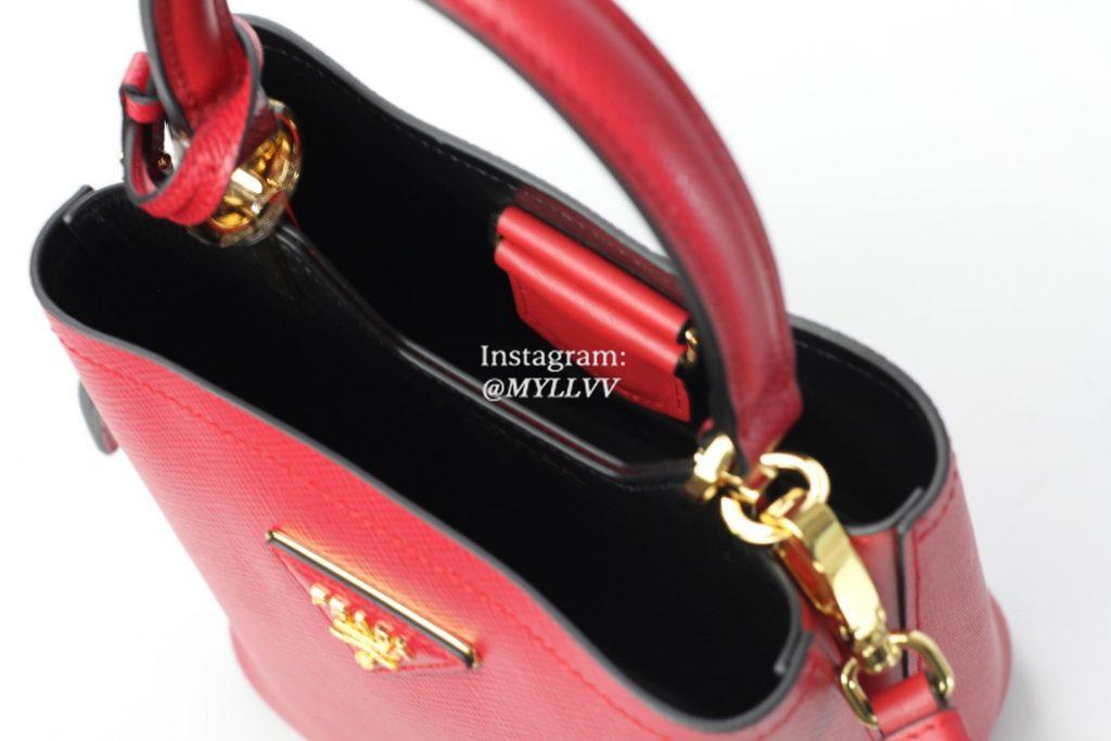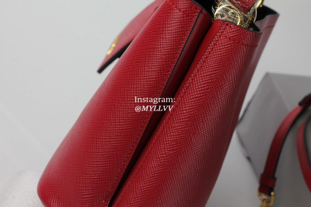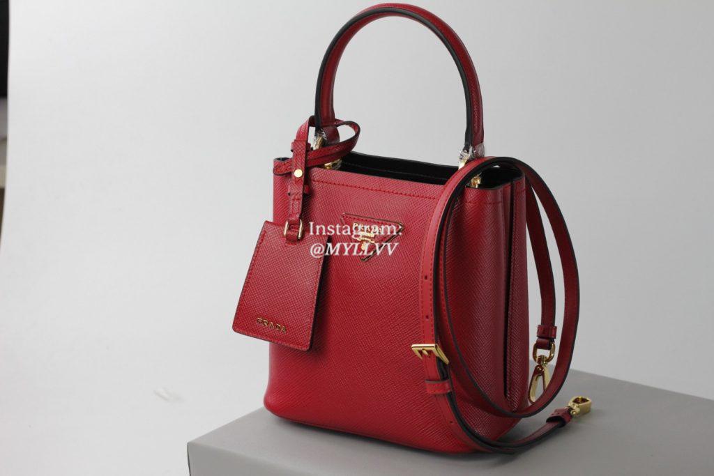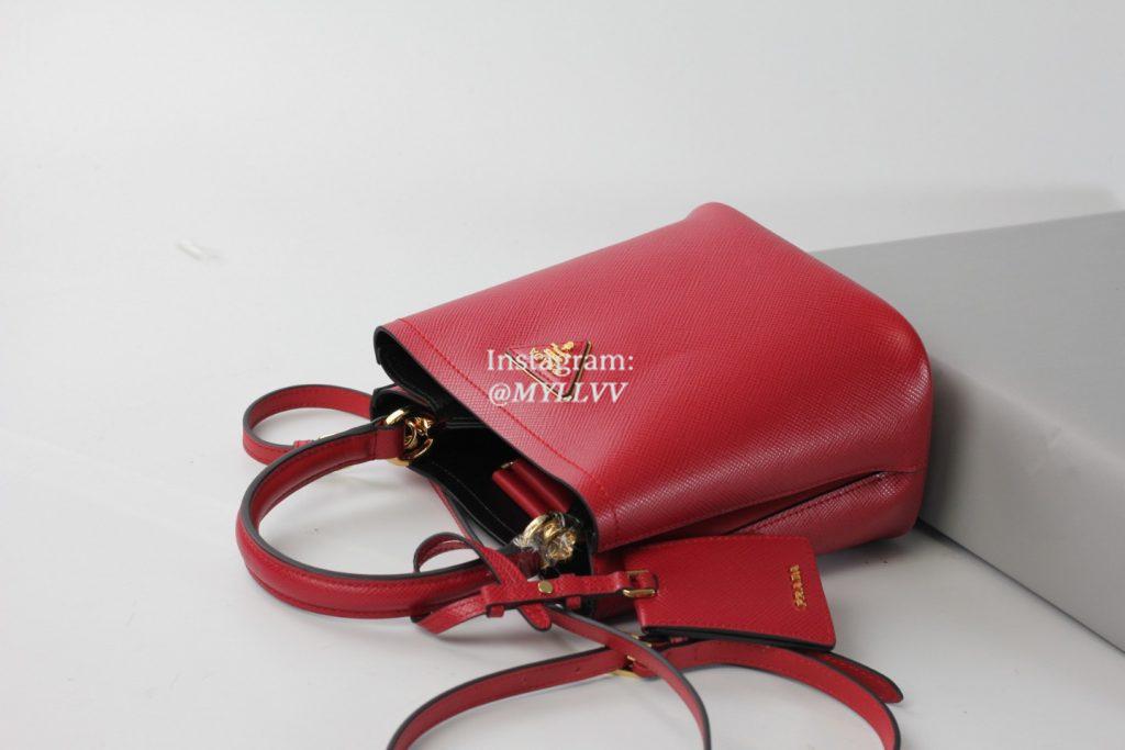 Top Quality Version:MYLLVV » Prada Red Saffiano Leather Small Bucket Bag For Women 1BA217