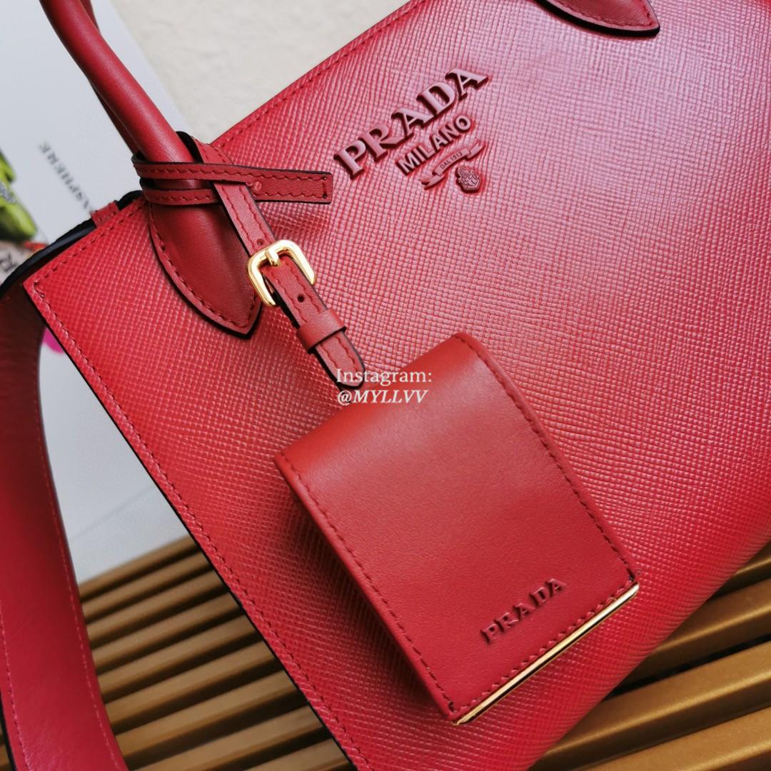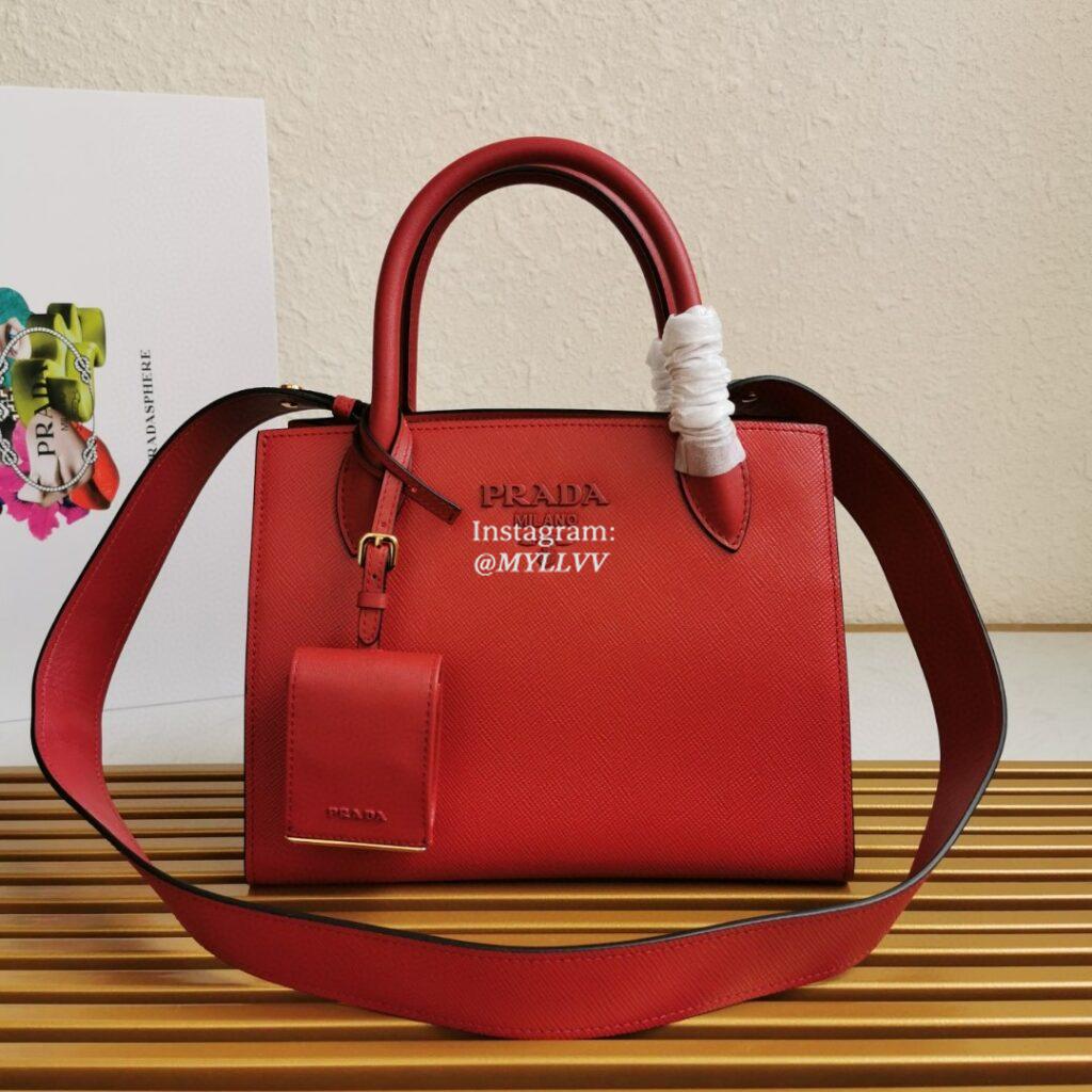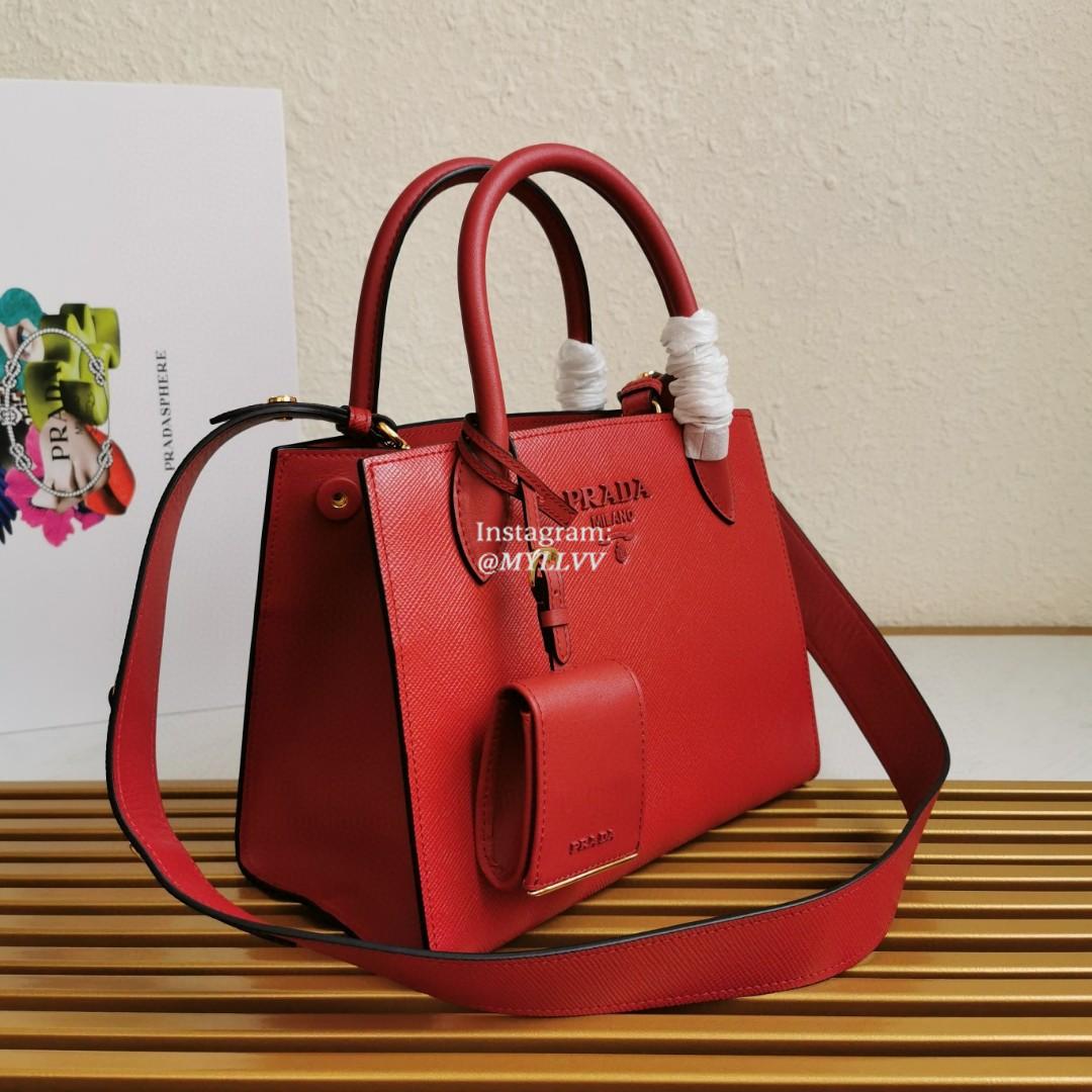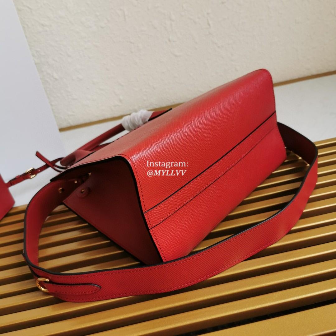 Top Quality Version:MYLLVV » Prada Red Small Saffiano Leather Prada Monochrome Bag 1BA156