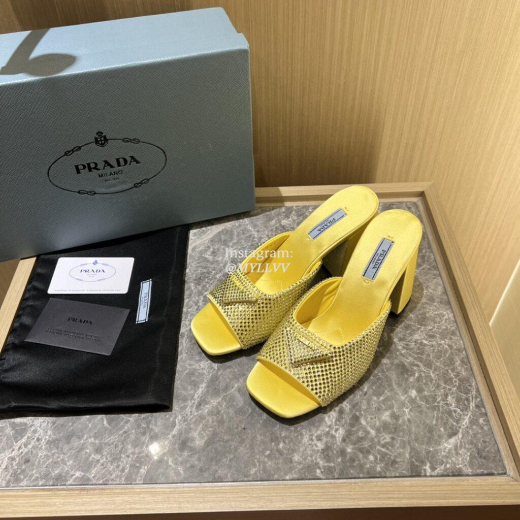 Top Quality Version:MYLLVV » Prada Diamonds Silk And Satin Lambskin High Heel Slipper Yellow