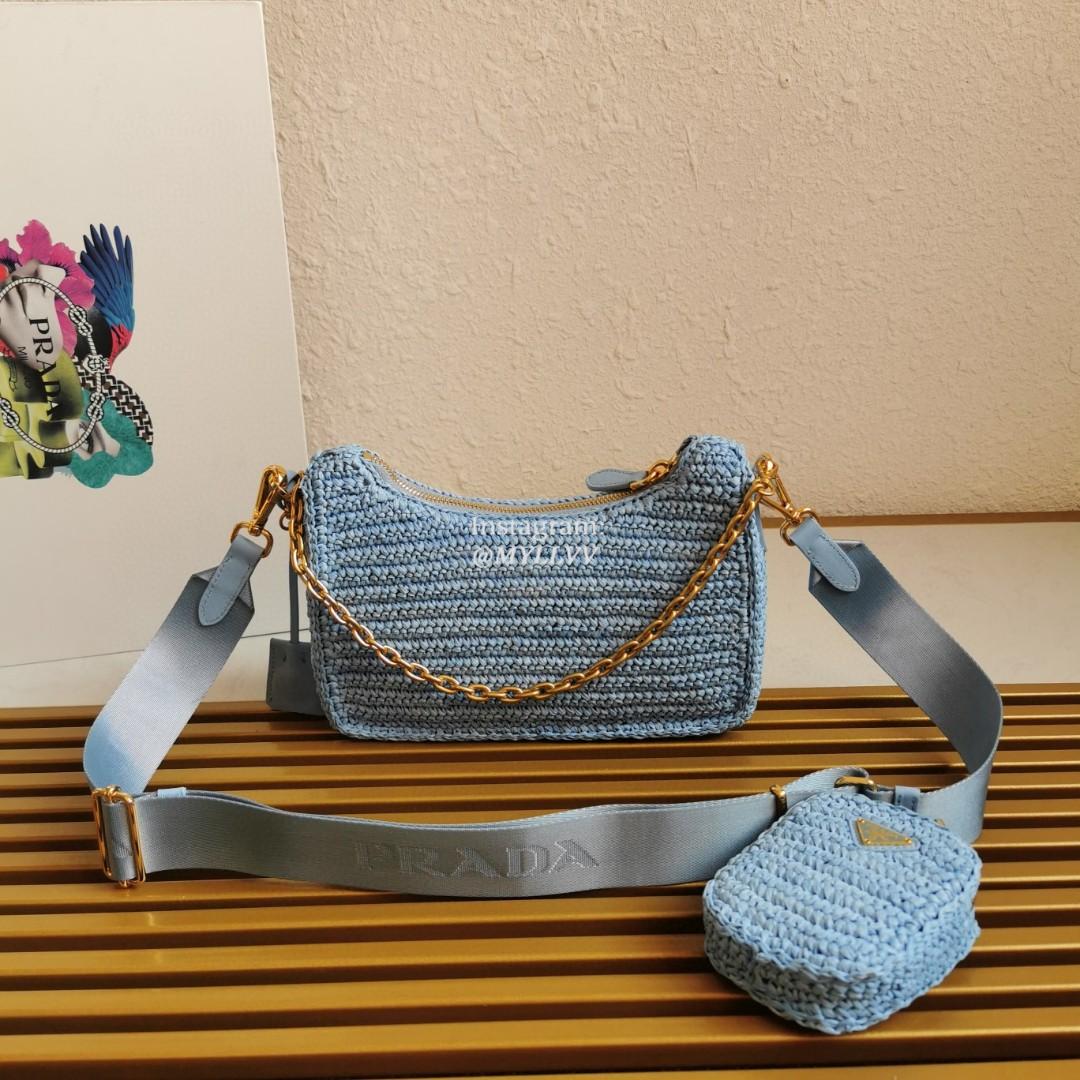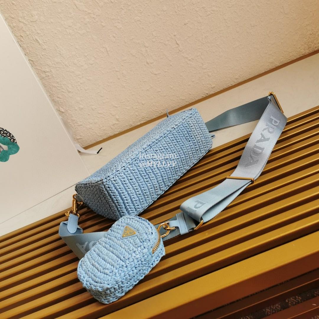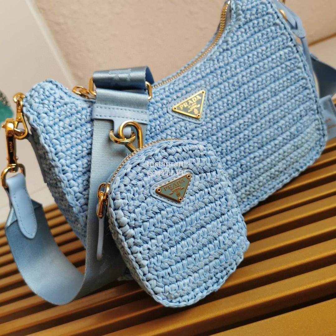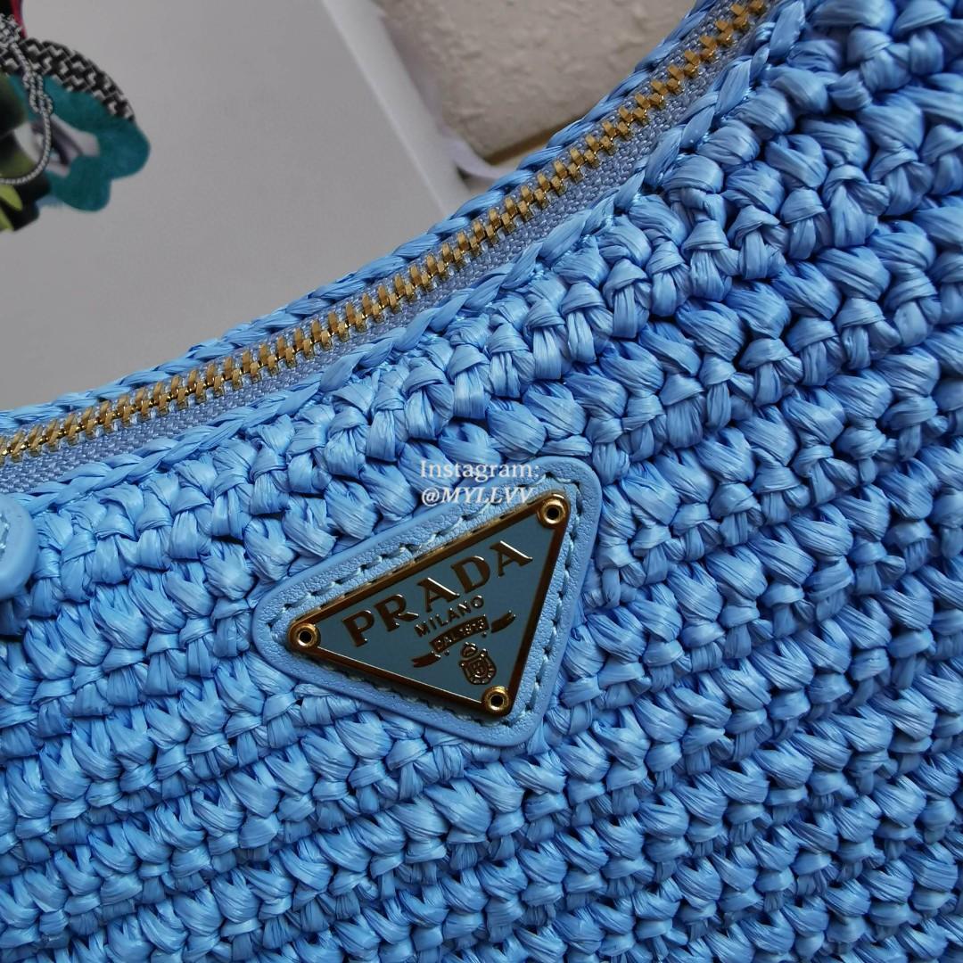 Top Quality Version:MYLLVV » Prada Sky Blue Re-Edition 2005 Raffia Bag 1BH204