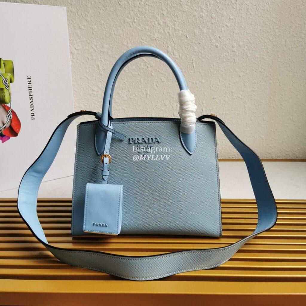 Top Quality Version:MYLLVV » Prada Sky Blue Small Saffiano Leather Prada Monochrome Bag 1BA156