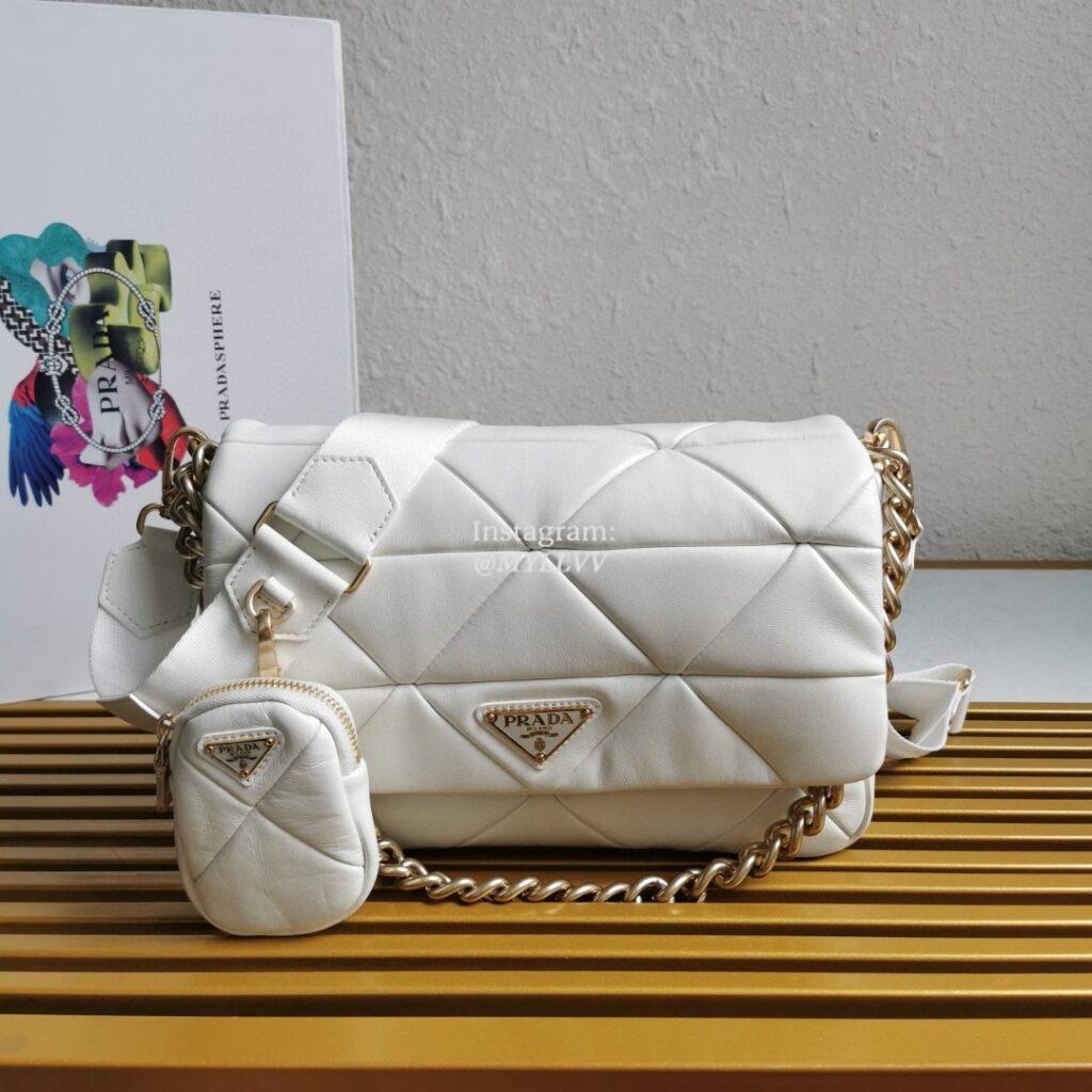 Top Quality Version:MYLLVV » Prada System Nappa Patchwork Shoulder Bag White 1BD291
