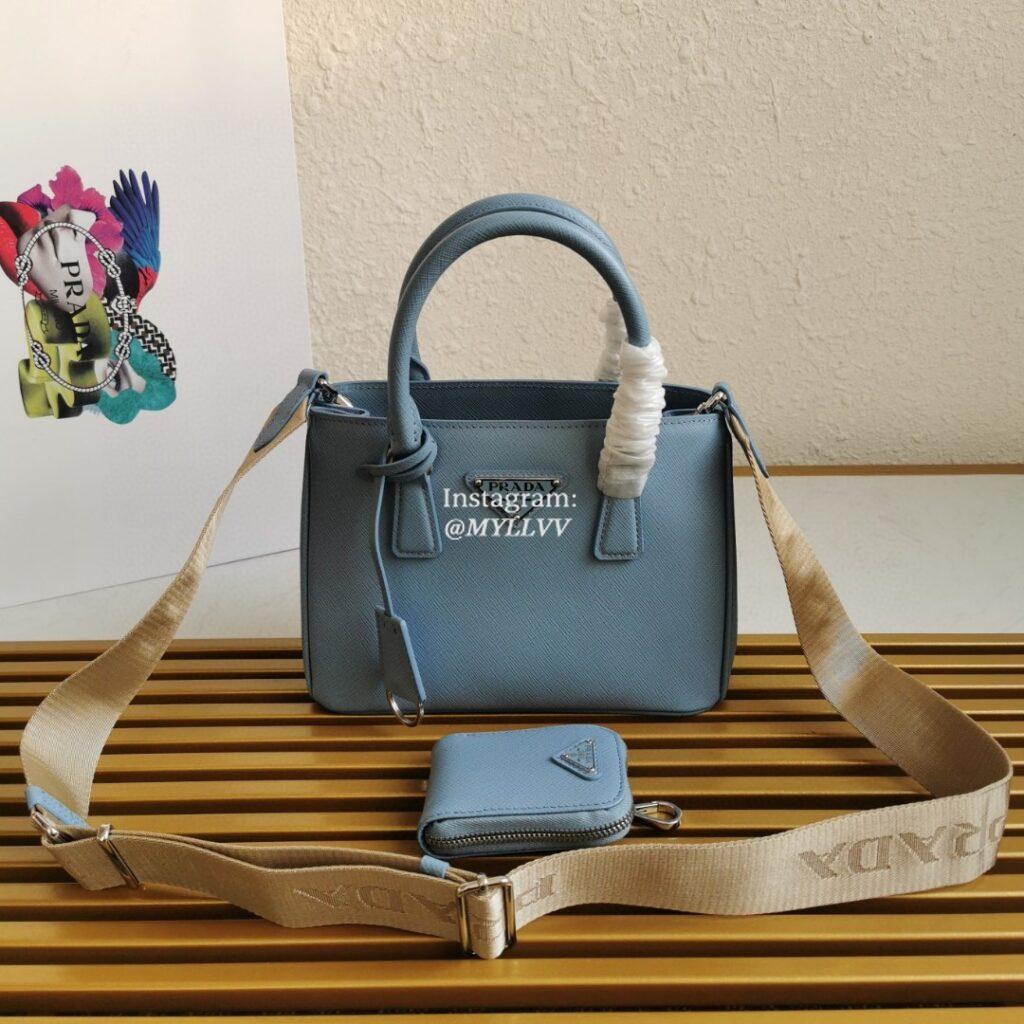 Top Quality Version:MYLLVV » Prada Water Blue Galleria Saffiano Leather Small Bag 1BA296
