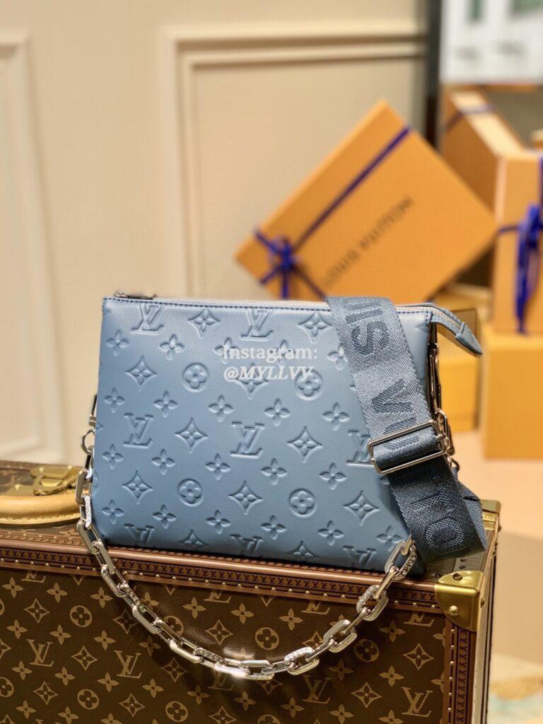 Top Quality Version:MYLLVV » Louis Vuitton Water Blue Monogram Embossed Puffy Lambskin Coussin PM Handbag M57793
