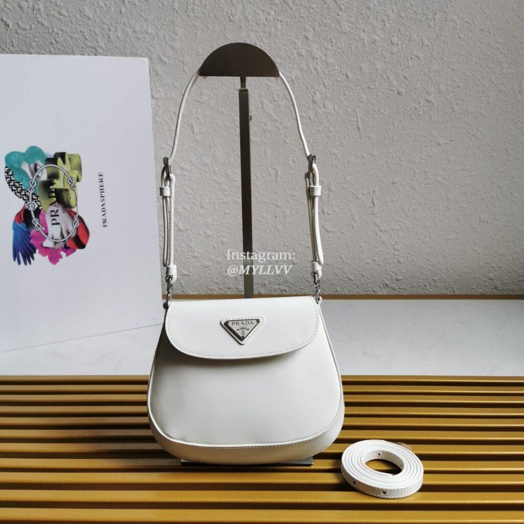Top Quality Version:MYLLVV » Prada White Cleo Brushed Leather Mini Bag 1BH188