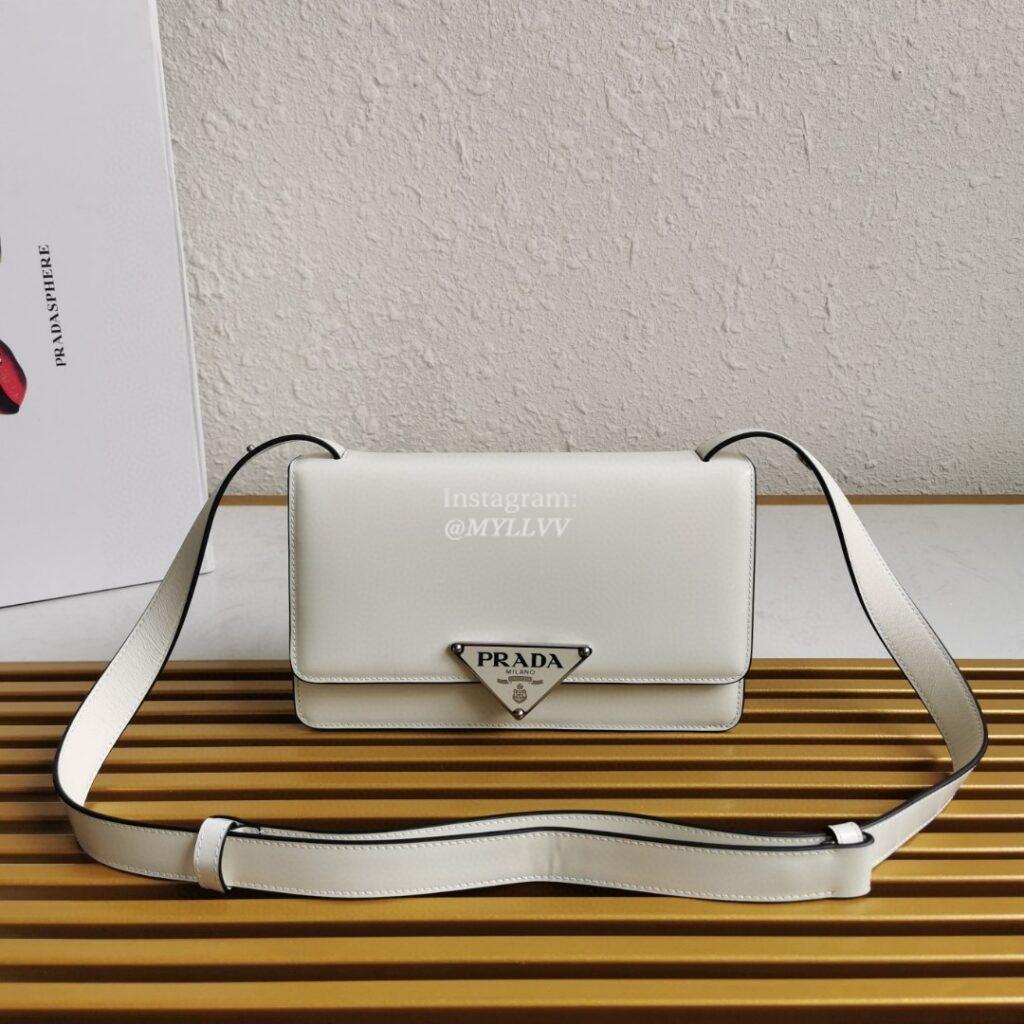 Top Quality Version:MYLLVV » Prada White Emblème Brushed-Leather Bag 1BD321