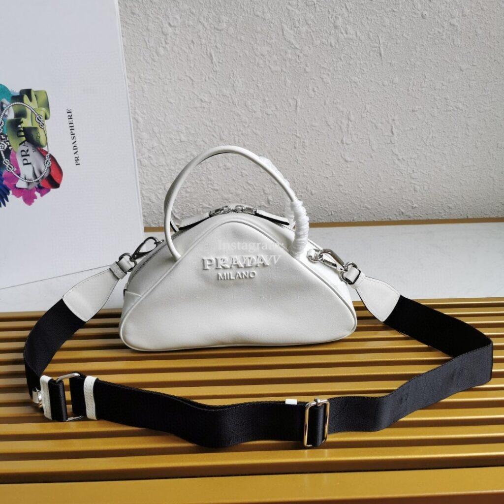 Top Quality Version:MYLLVV » Prada White Leather Prada Triangle Bag 1BB082