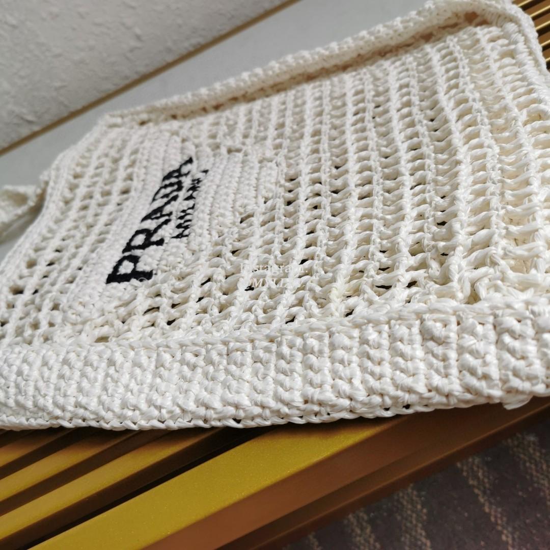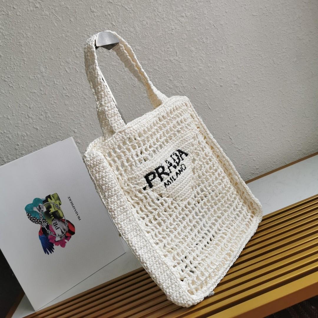 Top Quality Version:MYLLVV » Prada White Raffia Tote Bag 1BG393