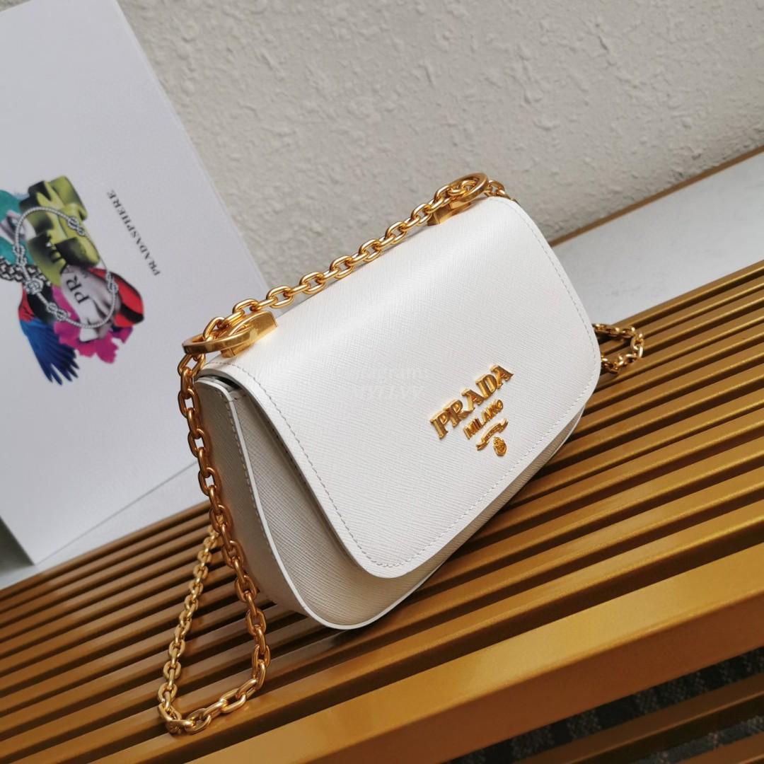 Top Quality Version:MYLLVV » Prada White Saffiano Leather Shoulder Bag 1BD275