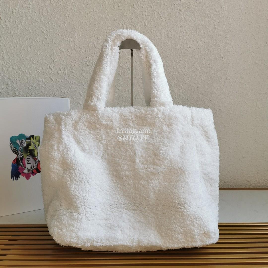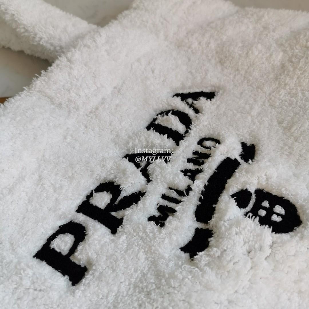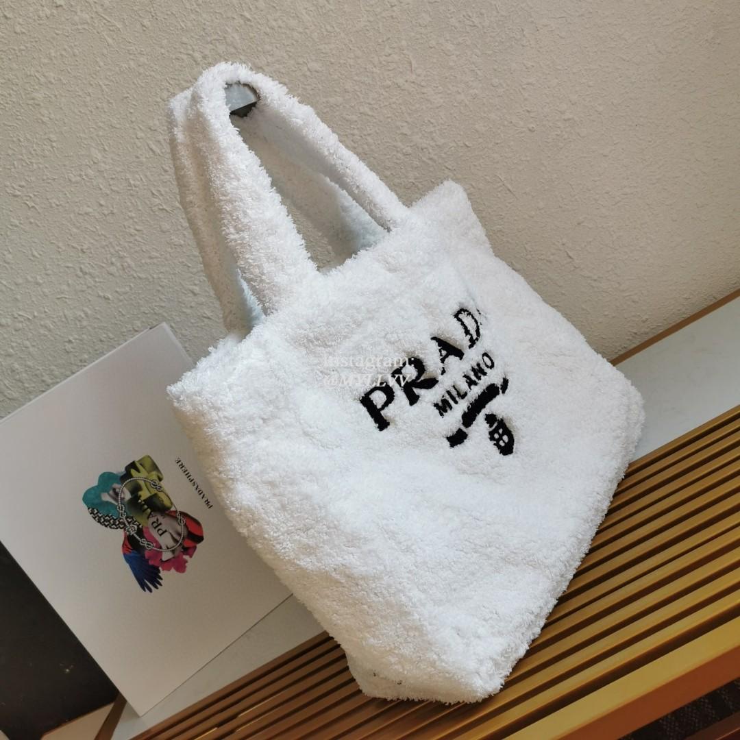 Top Quality Version:MYLLVV » Prada White Terry Tote Bag 1BG130