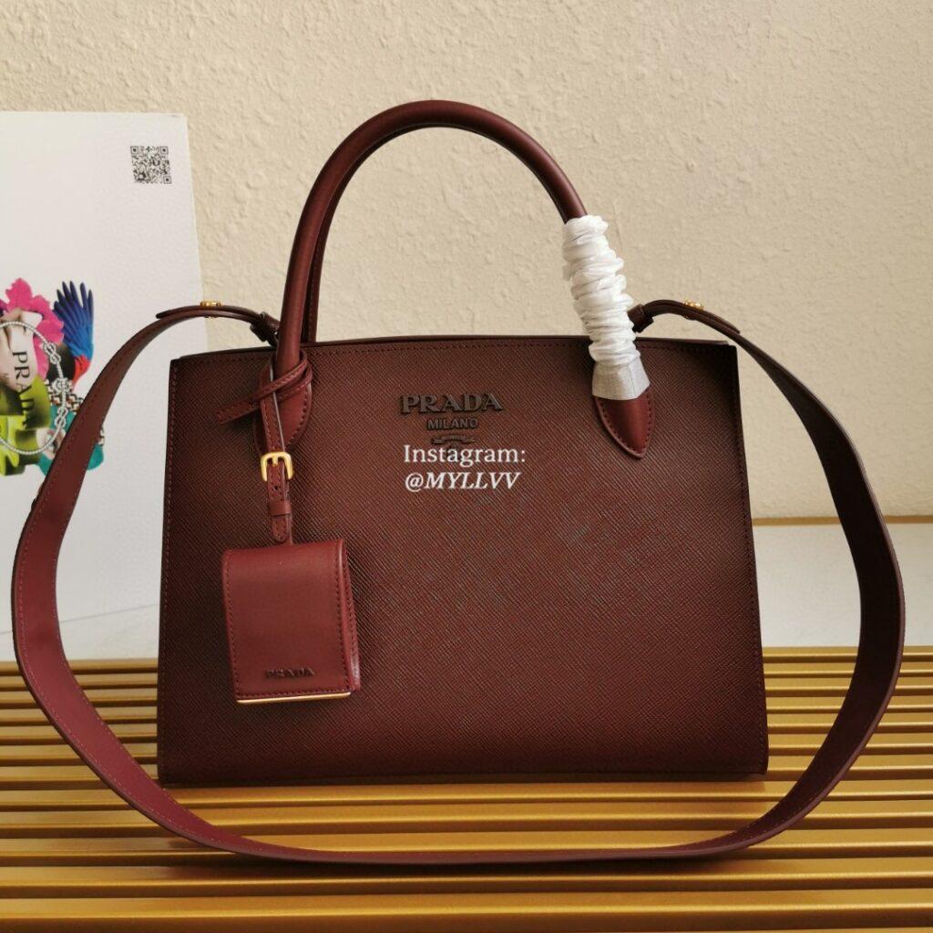 Top Quality Version:MYLLVV » Prada Wine Red Monochrome Medium Saffiano Bag 1BA155