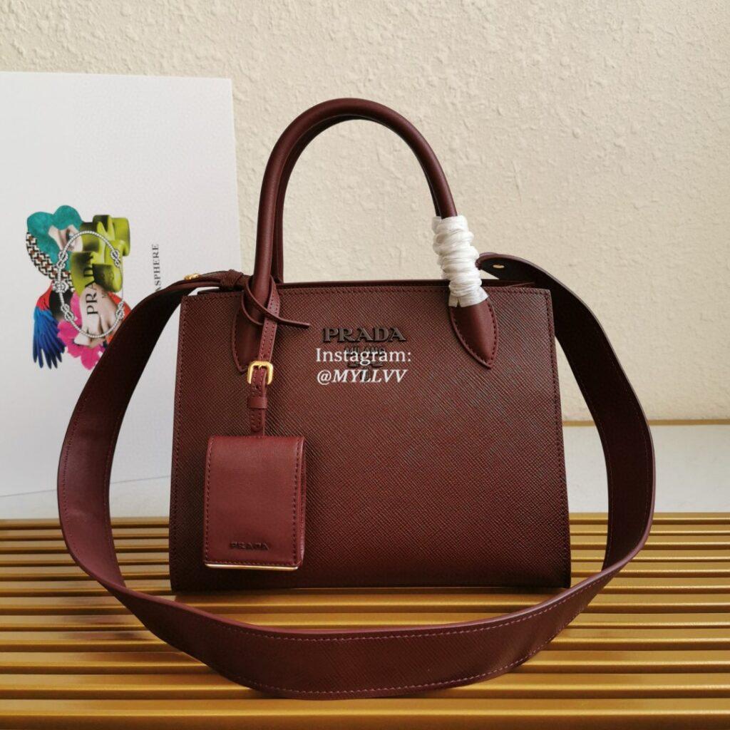 Top Quality Version:MYLLVV » Prada Wine Red Small Saffiano Leather Prada Monochrome Bag 1BA156