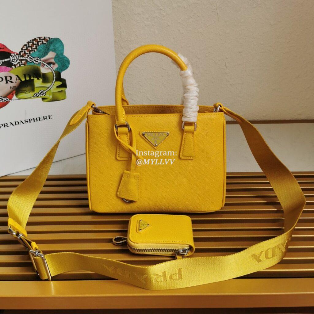 Top Quality Version:MYLLVV » Prada Yellow Galleria Saffiano leather Small Bag 1BA296