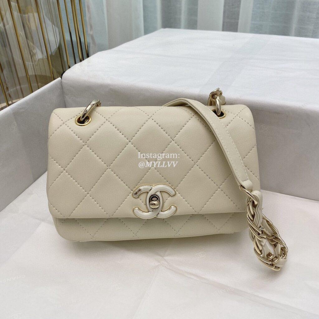 The Prada Cleo bag with sophisticated allure reinterprets an iconic design of the brand from the 1990’s. Sleek curved lines emphasized by the particular construction rounded on the bottom and sides give this flap bag a soft, light look. Brushed leather, a modern and versatile material that is distinctive in Prada collections, is ideal for creating always new combinations and contrasts. The enamel triangle logo decorates the silhouette.