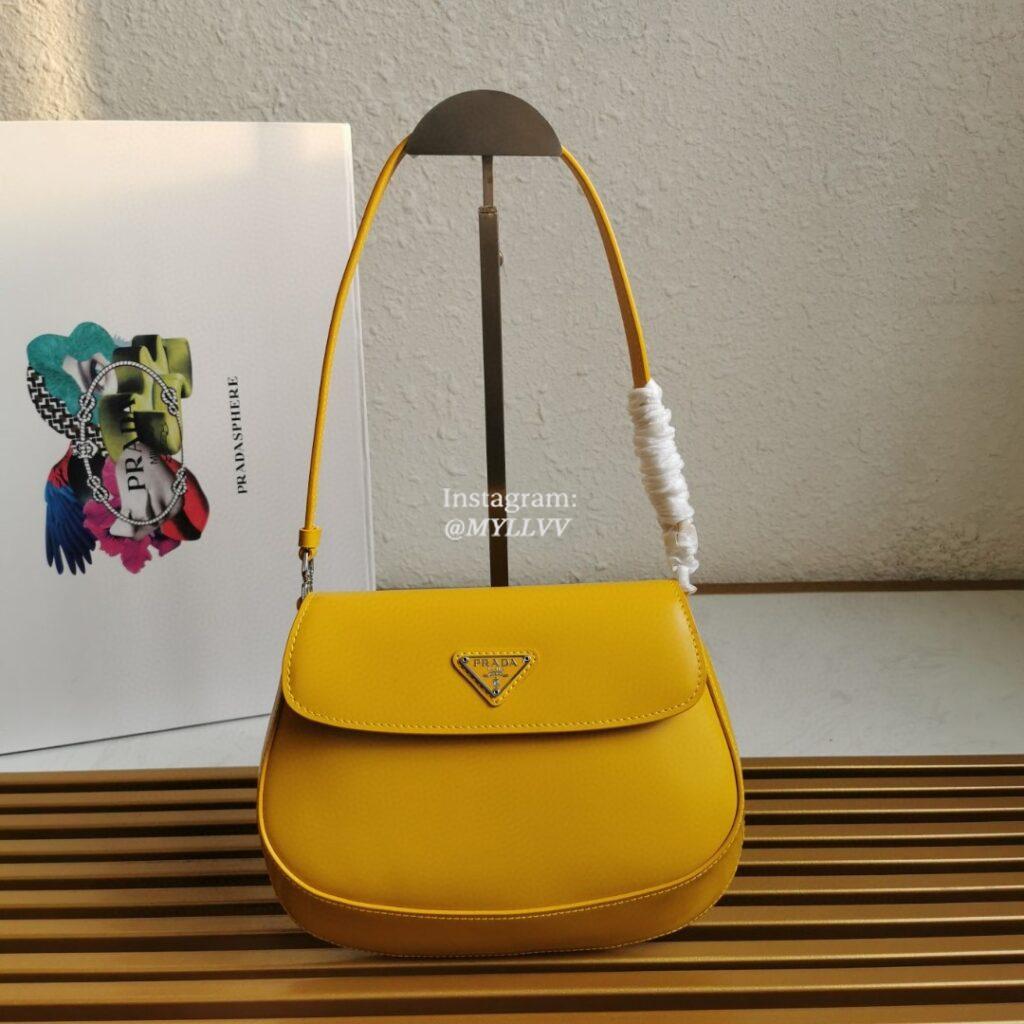 Top Quality Version:MYLLVV » Prada Yellow Cleo Brushed Leather Shoulder Bag With Flap 1BD311