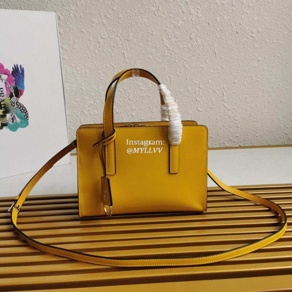 Top Quality Version:MYLLVV » Prada Yellow Re-Edition 1995 Brushed-Leather Mini Handbag 1BA357