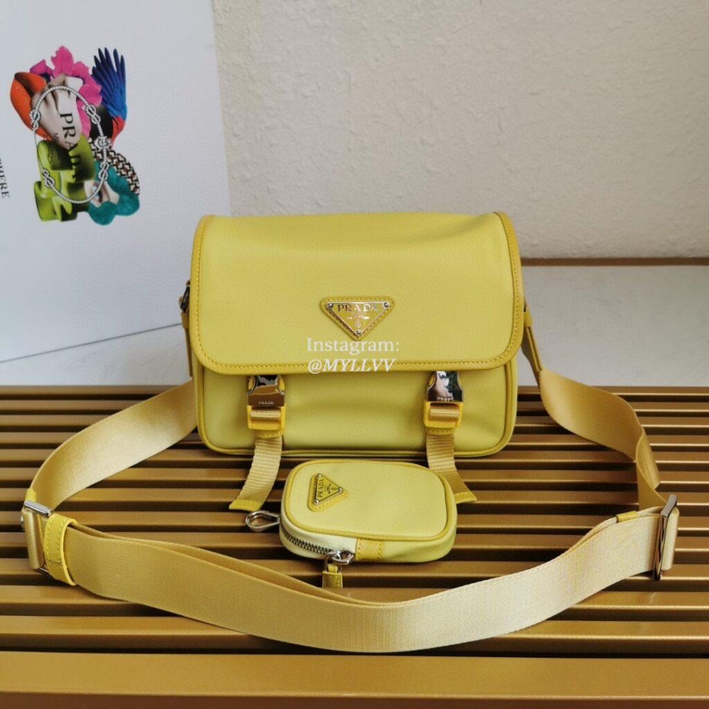 Top Quality Version:MYLLVV » Prada Yellow Re-Nylon And Saffiano Leather Shoulder Bag 2VD034