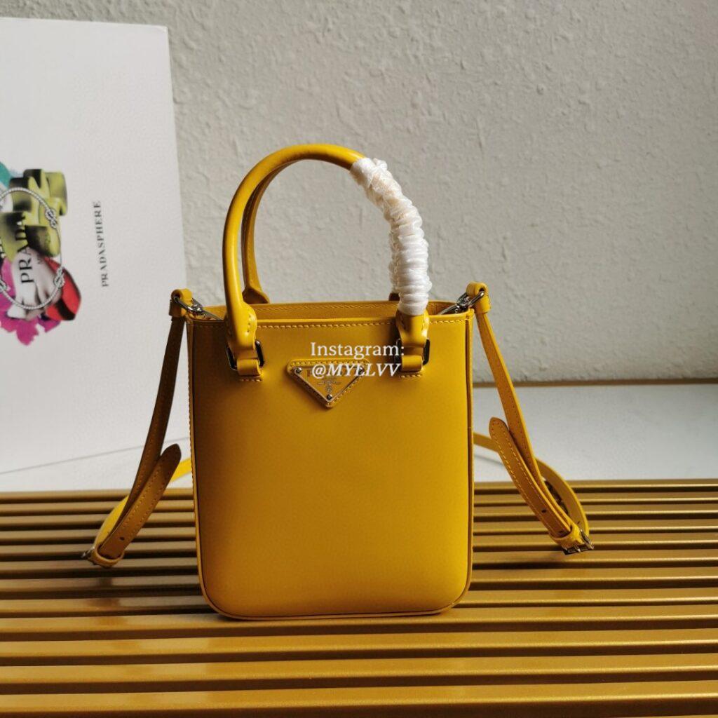 Top Quality Version:MYLLVV » Prada Yellow Small Brushed Leather Tote Bag 1BA331