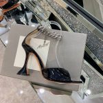 Amina Muaddi × Awge joint diamond chain diamond letter high-heel sandals (Black)