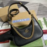 Gucci Black Soft Leather Aphrodite Small Shoulder Bag 735106