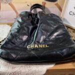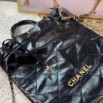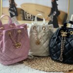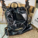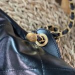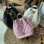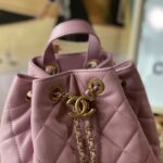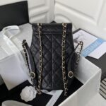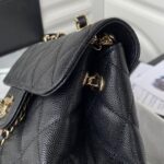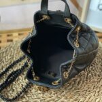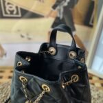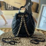 Chanel Diamond Plaid Oil Wax Skin Backpack Black With Gold 3332