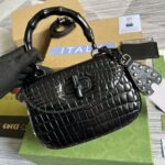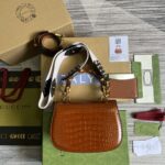 Gucci Brown Crocodile Bamboo 1947 Crocodile Small Bag 675797