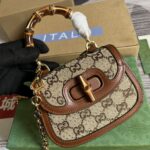 Gucci Beige And Ebony Canvas With GG Crystal Bamboo 1947 Mini Top Handle Bag 735116