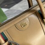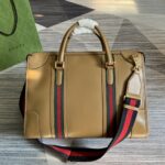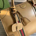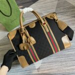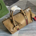 The duffle bag is reimagined in larger dimensions for the travel selection of Exquisite Gucci. Presented in smooth light brown leather, the ...