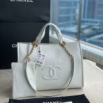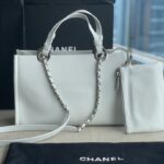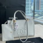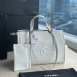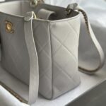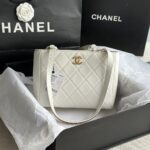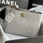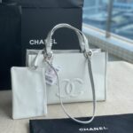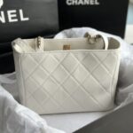 Chanel Diamond Plaid Cowhide Shopping Bag White With Silver AS3128