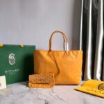 Goyard Goyardine Canvas Chevroches Calfskin Cowhide Medium Two-Sided Tote Bag Yellow 020661
