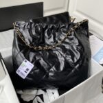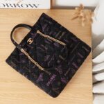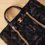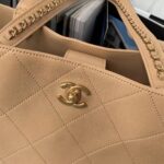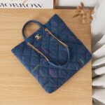 Chanel Diamond Plaid Oil Wax Leather Shopping Bag Black With Gold AS3261