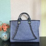 Chanel Canvas Beach Shopping Bag Blue With Silver 66941